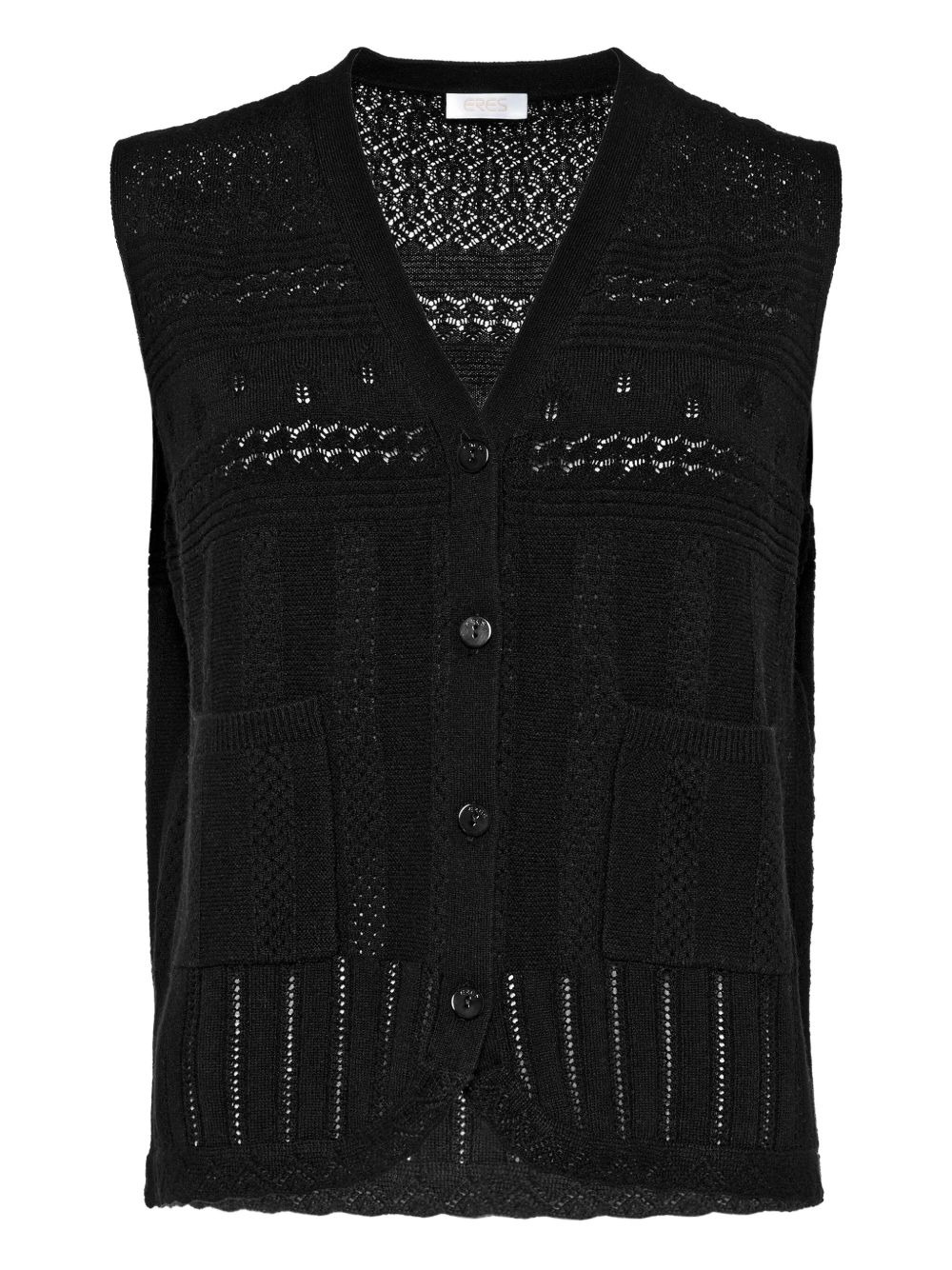Mixte cardigan Highlights - Black - Pointelle knit - V-neck - Button fastening - Sleeveless - Scalloped hem Imported Composition Wool 85%, Cashmere 15% Washing instructions Hand Wash