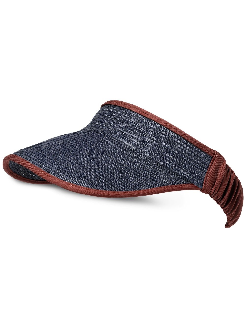 Carla visor Highlights - Blue - Elasticated band - Curved peak - Contrasting trim Made in Italy Composition Paper 85%, Polyester 15% Washing instructions Do Not Wash/Do Not Dry Clean