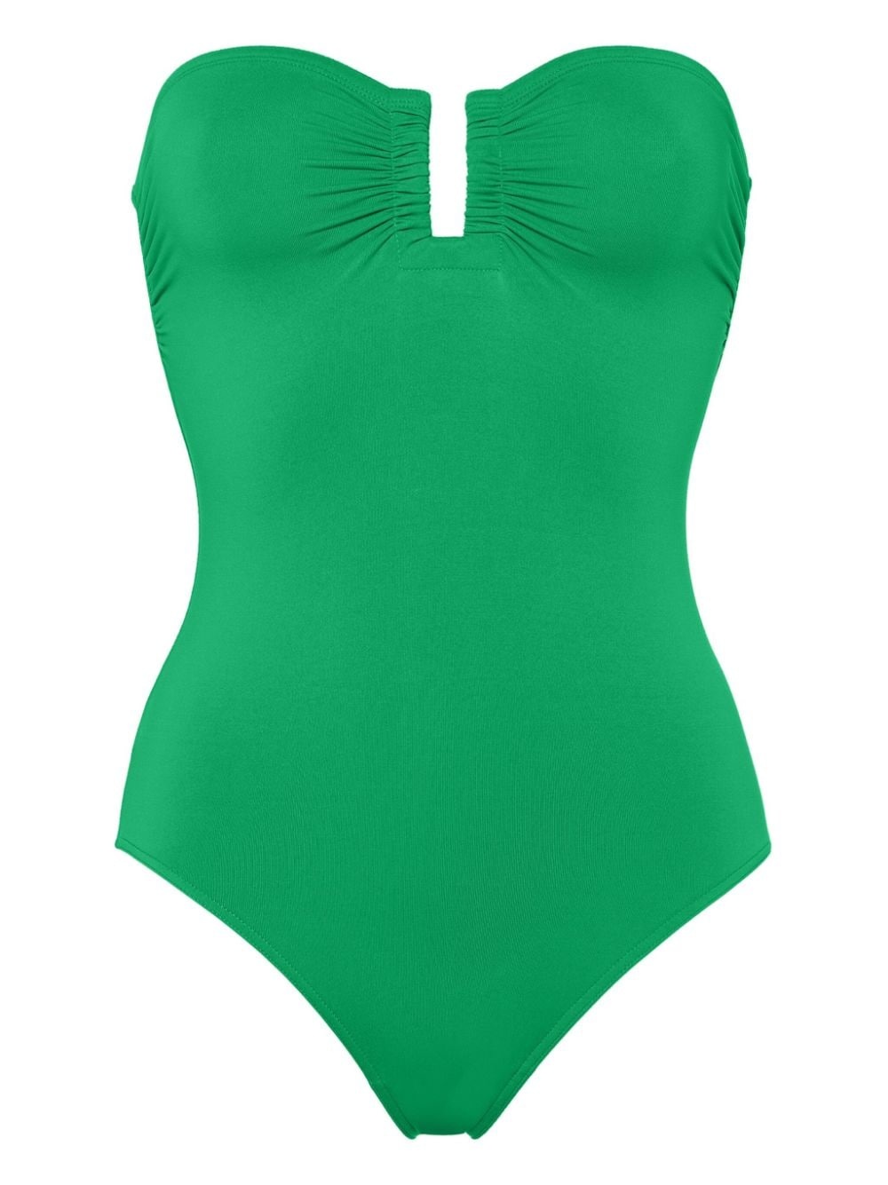 Cassiopee swimsuit Highlights - Bright green - Stretch-design - Bustier-style neckline - Ruched detailing - Strapless - Sleeveless - High cut - Full coverage - Be mindful to try on swimwear over your own garments. Made in Italy Composition Polyamide 84%, Spandex/Elastane 16% SIZE & FIT FittingInformation Designed to fit close to the body, offering minimal flexibility and movement Made from a lightweight stretch fabric, this piece offers elasticity and flexibility when worn This piece fits small – take one size up Measurement BUST 23.62 in(60 cm) LENGTH 18.5 in(47 cm) WAIST 22.04 in(56 cm) Washing instructions Machine Wash