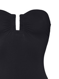 Cassiopee bustier swimsuit Highlights - Black - Stretch-design - Strapless - Bustier-style neckline - Ruched detailing - Be mindful to try on swimwear over your own garments. Made in Italy Composition Polyamide 84%, Spandex/Elastane 16% SIZE & FIT FittingInformation Designed to offer medium brief coverage This piece fits small – take one size up Washing instructions Machine Wash
