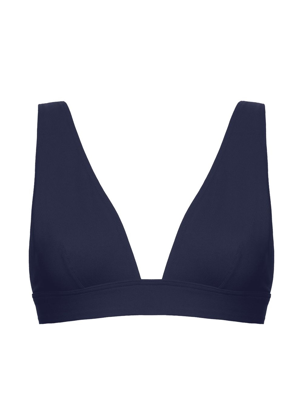 Chrome triangle-cup bikini top Highlights - Navy blue - Stretch-design - Wide shoulder straps - Triangle cup - Square open back - Rear clasp fastening - Be mindful to try on swimwear over your own garments. Made in France Composition Polyamide 84%, Spandex/Elastane 16% SIZE & FIT FittingInformation Designed to offer medium brief coverage Made from a lightweight stretch fabric, this piece offers elasticity and flexibility when worn This piece fits small – take one size up
