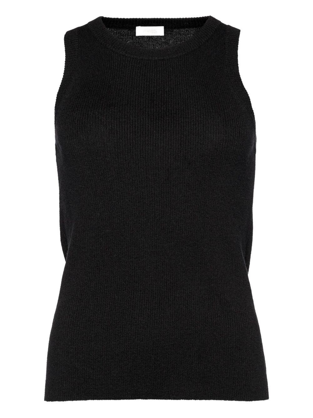 Doux top Highlights - Black - Fine ribbed knit - Crew neck - Sleeveless - Straight hem - Cashmere Imported Composition Cashmere 100%