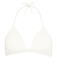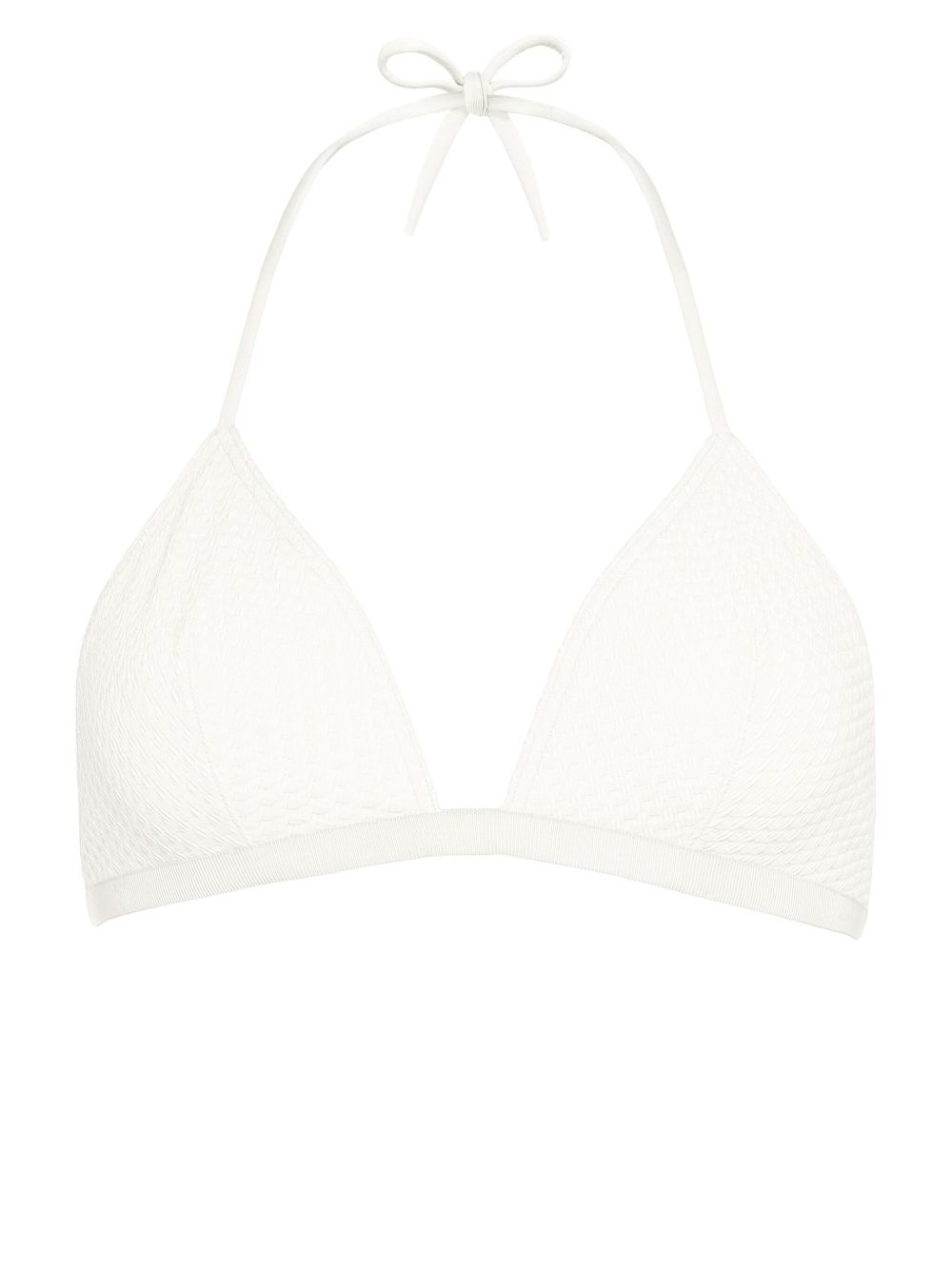 Extra bikini top Highlights - Off-white - Rear hook fastening - Rear tie fastening - Triangle cup Made in France Composition Polyamide 91%, Spandex/Elastane 9% SIZE & FIT FittingInformation This piece fits small – take one size up