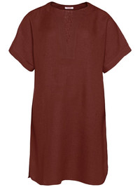 Favorite mini dress Highlights - Brown - Two side inset pockets - Belted waist - V-neck - Side slits Imported Composition Linen/Flax 100%