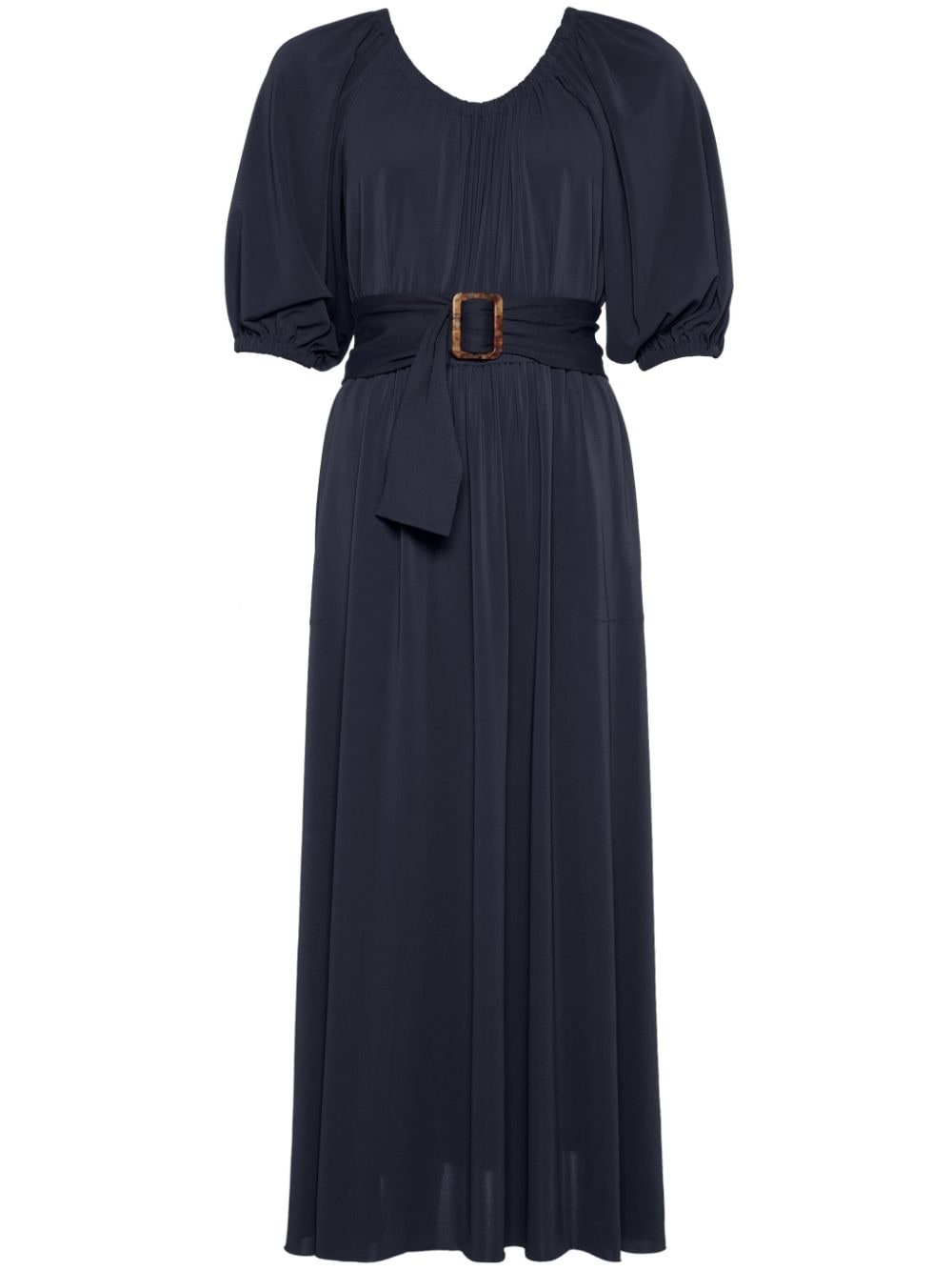 Gabriela long dress Highlights - Midnight blue - Stretch-design - Off-shoulder - Elasticated trim - Short puff sleeves - Belted waist - Straight hem - Calf-length Made in France Composition Polyamide 94%, Spandex/Elastane 6%