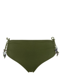 Galilee bikini briefs Highlights - Moss green - Stretch-design - High-rise - Side tie fastening - Bead embellishment - Classic bottoms - Be mindful to try on swimwear over your own garments. Made in France Composition Polyamide 84%, Spandex/Elastane 16% SIZE & FIT FittingInformation This piece fits small – take one size up Washing instructions Machine Wash