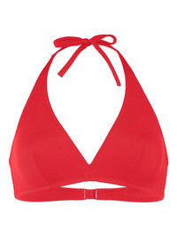 Gang halterneck triangle bikini top Highlights - Red - Triangle shape - Halterneck - Clasp fastening - Be mindful to try on swimwear over your own garments. Made in France Composition Polyamide 84%, Spandex/Elastane 16% SIZE & FIT FittingInformation The tie fastening gives an adaptable and personalised fit Made from a lightweight stretch fabric, this piece offers elasticity and flexibility when worn This piece fits small – take one size up Washing instructions Machine Wash