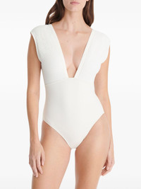 Glamorous swimsuit Highlights - White - Plunging v-neck - Cap sleeves - Low back - Be mindful to try on swimwear over your own garments. Imported Composition Polyamide 91%, Spandex/Elastane 9% SIZE & FIT FittingInformation This piece fits small – take one size up