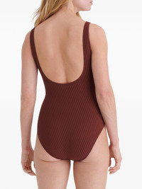 Glory swimsuit Highlights - Brown - Scoop neck - Thin shoulder straps - Low back - Be mindful to try on swimwear over your own garments. Made in Italy Composition Polyamide 91%, Spandex/Elastane 9% SIZE & FIT FittingInformation This piece fits small – take one size up