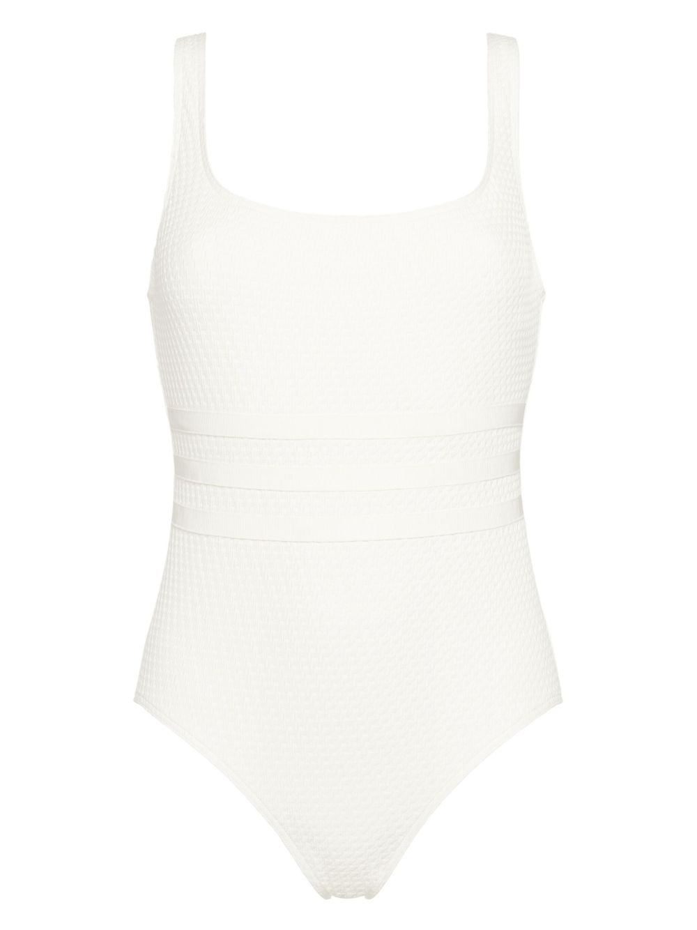 The Vogue Glory grosgrain-trimmed jacquard swimsuit Off-white