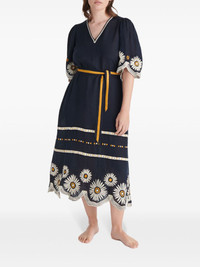 Hortense floral-embroidered linen dress Highlights - Blue/white - Linen - Floral embroidery - V-neck - Tied waist - Short sleeves - Mid-length - Scallop hem Imported Composition Linen/Flax 100%