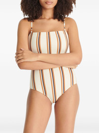 Iode swimsuit Highlights - White - Halo stripe pattern - Square neck - Sleeveless - Be mindful to try on swimwear over your own garments. Made in Italy Composition Polyamide 82%, Spandex/Elastane 18% SIZE & FIT FittingInformation This piece fits small – take one size up