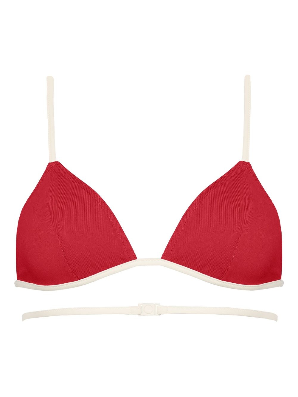 Karen bikini top Highlights - Red - Contrasting trim - Triangle cup - Spaghetti straps - Be mindful to try on swimwear over your own garments. Made in Italy Composition Polyamide 77%, Spandex/Elastane 23% SIZE & FIT FittingInformation This piece fits small – take one size up