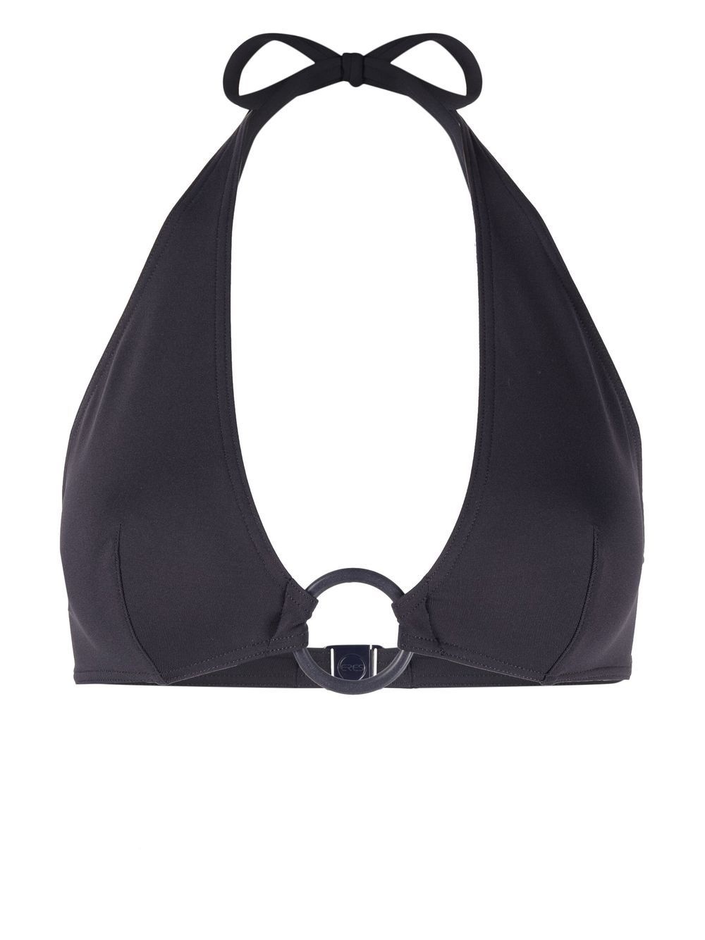Leandra triangle bikini top Highlights - Blue - Hoop detailing - Halterneck tie fastening - Sleeveless - Be mindful to try on swimwear over your own garments. Made in France Composition Polyamide 84%, Elastane 16% Washing instructions Machine Wash