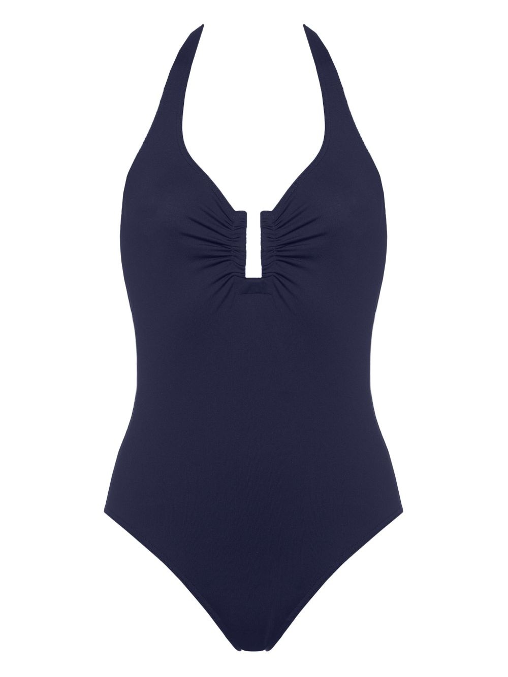 Legendaire swimsuit Highlights - Navy blue - Halterneck tie fastening - Open back - Gathered detailing - Be mindful to try on swimwear over your own garments. Made in Italy Composition Polyamide 84%, Spandex/Elastane 16% SIZE & FIT FittingInformation This piece fits small – take one size up