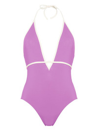 Loulou swimsuit Highlights - Lilac purple - Contrasting trim - V-neck - Halterneck tie fastening - Be mindful to try on swimwear over your own garments. Made in Italy Composition Polyamide 77%, Spandex/Elastane 23% SIZE & FIT FittingInformation This piece fits small – take one size up Washing instructions Machine Wash