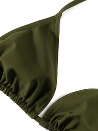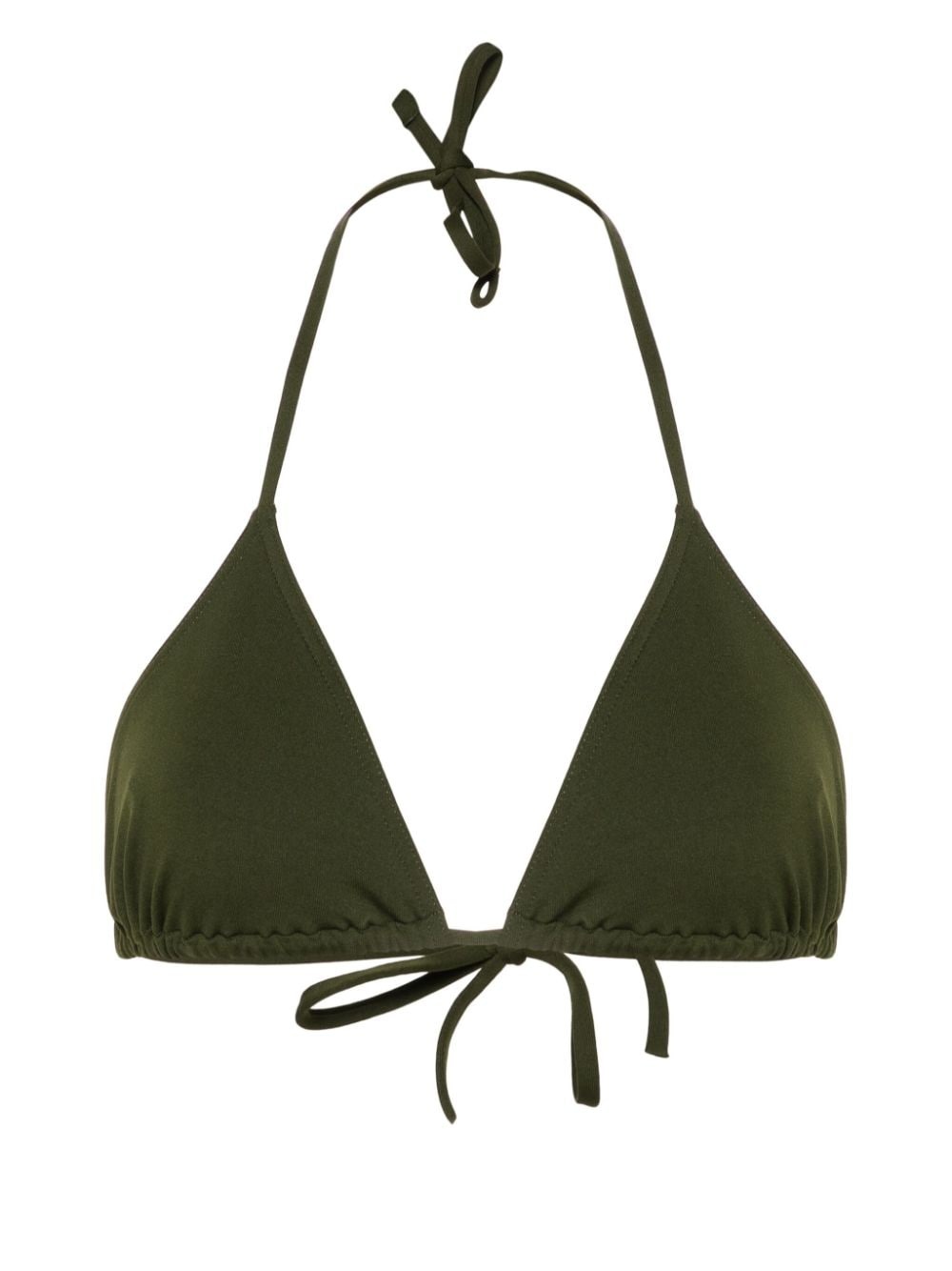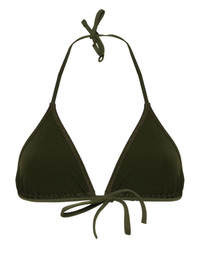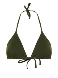 Mouna triangle bikini top Highlights - Dark green - Stretch-design - Halterneck - Triangle cup - Rear tie fastening - Adjustable fit - Be mindful to try on swimwear over your own garments. Made in France Composition Polyamide 84%, Spandex/Elastane 16% SIZE & FIT FittingInformation This piece fits small – take one size up
