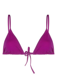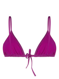 Mouna triangle bikini top ERES' penchant for timeless swimwear silhouettes is evident in this Mouna bikini top. Embracing simplicity, the piece is presented in an intense purple hue and finished with a rear tie fastening. Highlights - Purple - Stretch-design - Triangle cup - Rear tie fastening - Spaghetti straps - Be mindful to try on swimwear over your own garments. Made in France Composition Polyamide 84%, Spandex/Elastane 16% SIZE & FIT FittingInformation Designed to fit close to the body, offering minimal flexibility and movement The adjustable shoulder straps allow for a preferred fit when worn This piece fits small – take one size up Washing instructions Machine Wash