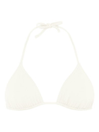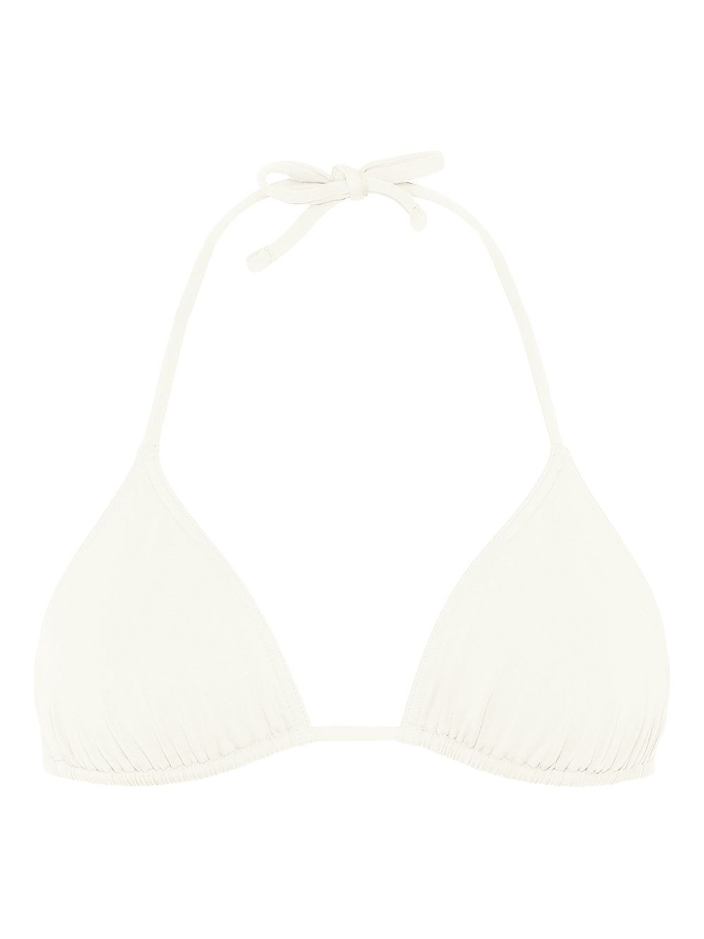 Mouna triangle bikini top Highlights - White - Adjustable tie straps - Ruched detailing - Minimalistic design - Triangular cups - Be mindful to try on swimwear over your own garments. Made in Italy Composition Polyamide 84%, Spandex/Elastane 16% Washing instructions Machine Wash
