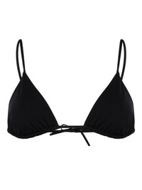 Mouna triangle-cup bikini top Highlights - Black - Stretch-design - Triangle cup - Spaghetti straps - Rear tie fastening - Be mindful to try on swimwear over your own garments. Made in France Composition Polyamide 84%, Spandex/Elastane 16% SIZE & FIT FittingInformation Designed to fit close to the body, offering minimal flexibility and movement The tie fastening gives an adaptable and personalised fit This piece fits small – take one size up Washing instructions Machine Wash