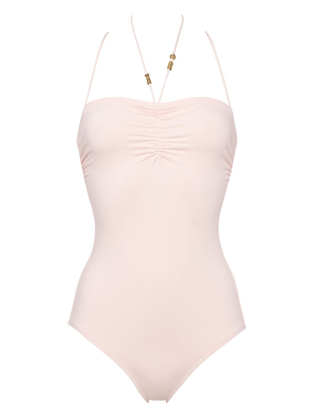Odyssee swimsuit Highlights - Pink - Rear tie fastening - Bustier-style neckline - Spaghetti straps - Be mindful to try on swimwear over your own garments. Made in France Composition Polyamide 77%, Spandex/Elastane 23%