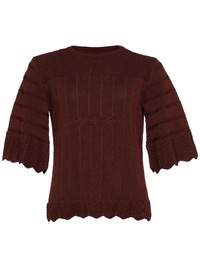 Reverie top Highlights - Brown - Open knit - Round neck - Three-quarter length sleeves - Scallop hem Made in Italy Composition Cotton 60%, Viscose 40%