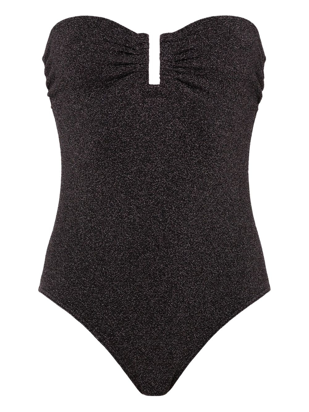 Irisée Scintillant strapless metallic swimsuit Black
