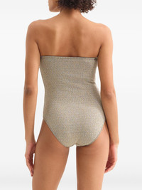 Scintillant swimsuit Highlights - Metallic gold-tone - Strapless design - Gathered detailing - Front prong insert - Be mindful to try on swimwear over your own garments. Made in France Composition Polyamide 74%, Polyester 21%, Spandex/Elastane 5%