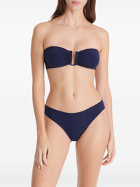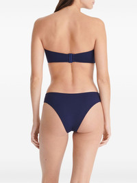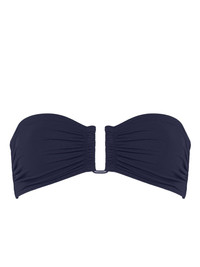 Show bandeau bikini top Highlights - Navy blue - Stretch-design - Ruched detailing - Bandeau style - Rear buckle fastening - Strapless - Elasticated underband - Be mindful to try on swimwear over your own garments. Made in Italy Composition Polyamide 84%, Spandex/Elastane 16% SIZE & FIT FittingInformation This piece fits small – take one size up