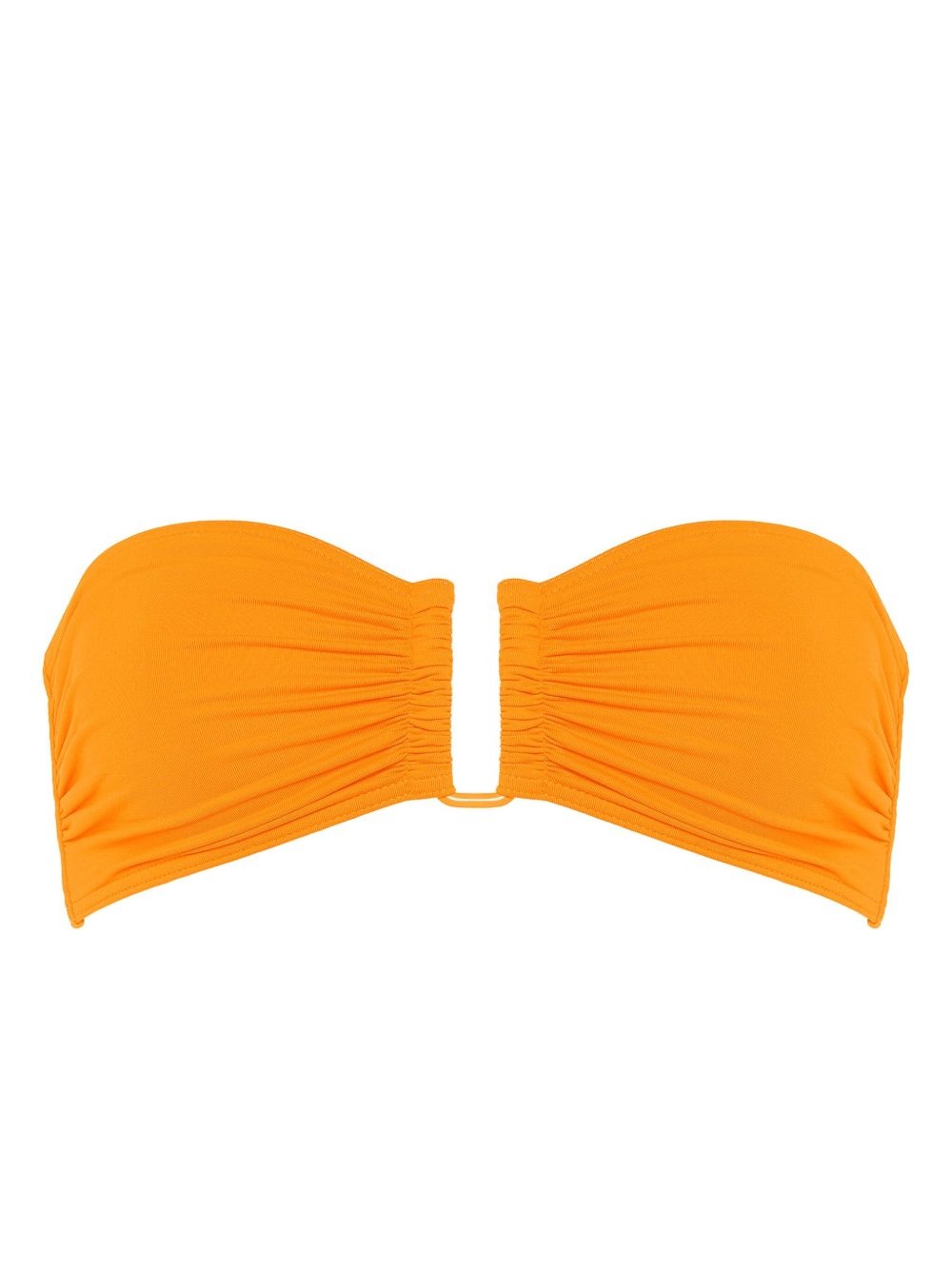 Show bandeau bikini top Highlights - Carrot orange - Stretch-design - Ruched detailing - Bandeau style - Rear buckle fastening - Strapless - Elasticated underband - Be mindful to try on swimwear over your own garments. Made in Italy Composition Polyamide 84%, Spandex/Elastane 16% SIZE & FIT FittingInformation This piece fits small – take one size up
