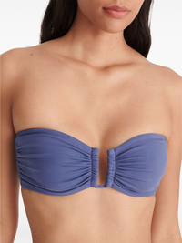 Show bandeau bikini top Highlights - Lavender blue - Stretch-design - Ruched detailing - Bandeau style - Rear buckle fastening - Strapless - Elasticated underband - Be mindful to try on swimwear over your own garments. Made in Italy Composition Polyamide 84%, Spandex/Elastane 16% SIZE & FIT FittingInformation This piece fits small – take one size up