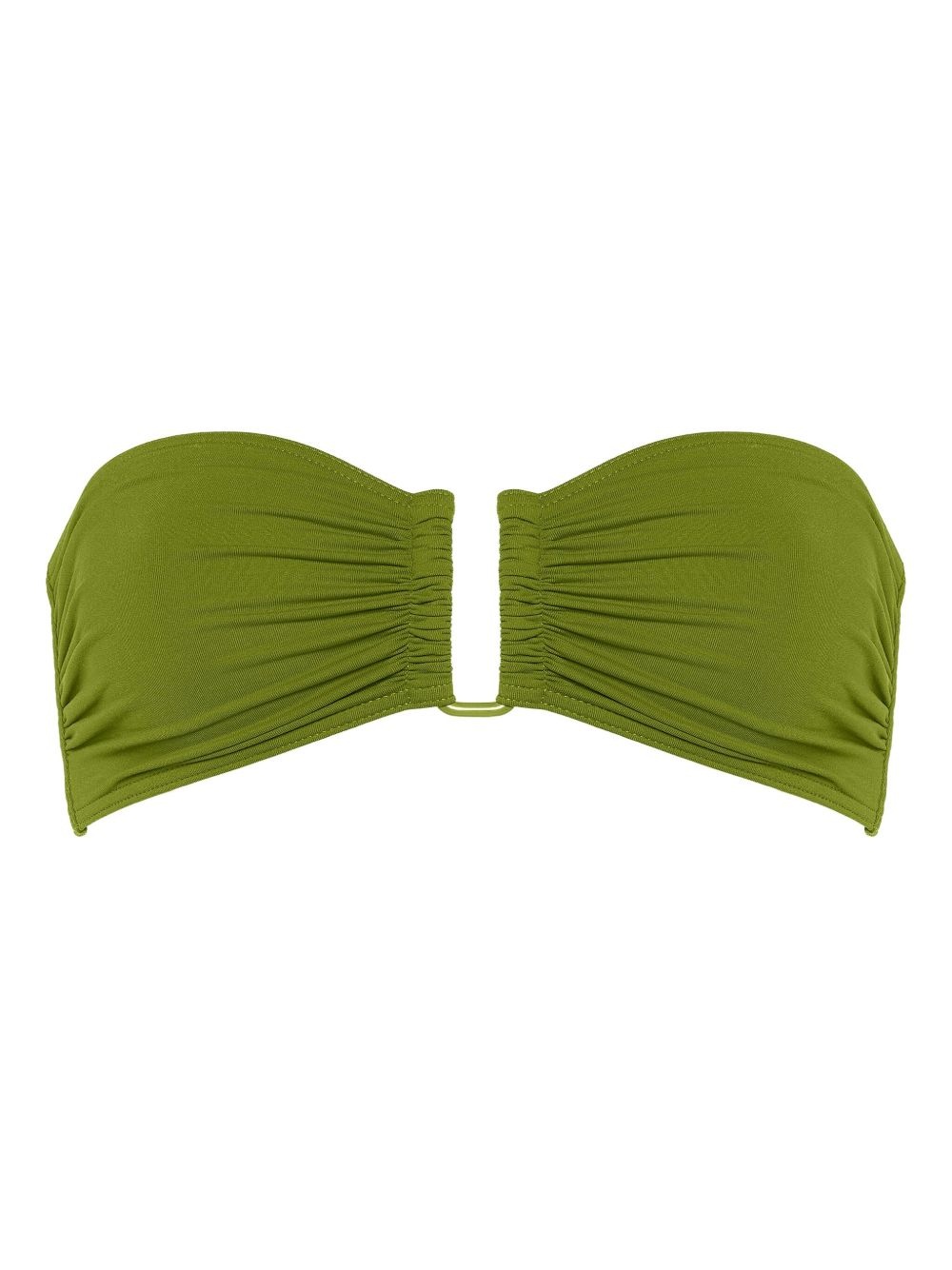 Show ruched bandeau bikini top Highlights - Green - Ruched detailing - Rear clasp closure - Strapless design - Smooth finish - Be mindful to try on swimwear over your own garments. Made in Italy Composition Polyamide 84%, Spandex/Elastane 16%