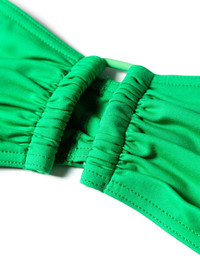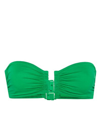 Show ruched bikini top Highlights - Grass green - Stretch-design - Ruched detailing - Bandeau style - Full cup - Rear clip fastening - Be mindful to try on swimwear over your own garments. Made in Italy Composition Polyamide 84%, Spandex/Elastane 16% SIZE & FIT FittingInformation Designed to fit close to the body, offering minimal flexibility and movement This piece fits small – take one size up Washing instructions Machine Wash