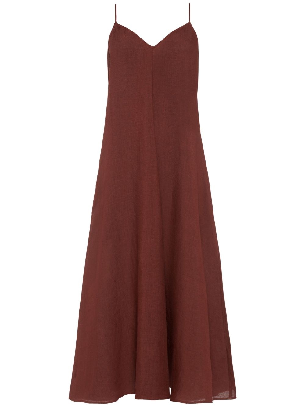Snob midi dress Highlights - Brown - Adjustable spaghetti straps - V-neck - Two side inset pockets Imported Composition Linen/Flax 100% Washing instructions Machine Wash