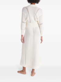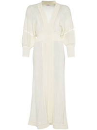 Stella knitted V-neck dress Highlights - Off-white - Cotton blend - Knitted construction - V-neck - Long sleeves - A-line skirt - Maxi - Straight hem Made in Italy Composition Cotton 60%, Viscose 40% SIZE & FIT Measurement HIPS 47.24 in(120 cm) LENGTH 48.03 in(122 cm) WAIST 27.55 in(70 cm)
