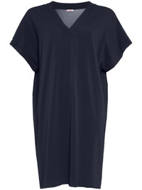 Tali V-neck tunic dress Highlights - Midnight blue - Jersey texture - V-neck - Short sleeves - Straight hem - Above-knee length Made in France Composition Polyamide 94%, Spandex/Elastane 6% SIZE & FIT Measurement LENGTH 35.03 in(89 cm) WAIST 42.12 in(107 cm) HIPS 40.94 in(104 cm) FittingInformation Designed to be unstructured, offering a loose fit throughout Made from a lightweight stretch fabric, this piece offers elasticity and flexibility when worn