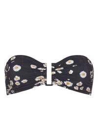Tendrement floral-print bikini top Highlights - Black/multicolour - Stretch-design - All-over floral print - Bandeau style - Ruched detailing - Sweetheart neck - Rear clasp fastening - Strapless - Be mindful to try on swimwear over your own garments. Made in Italy Composition Polyamide 84%, Spandex/Elastane 16% SIZE & FIT FittingInformation This piece fits small – take one size up