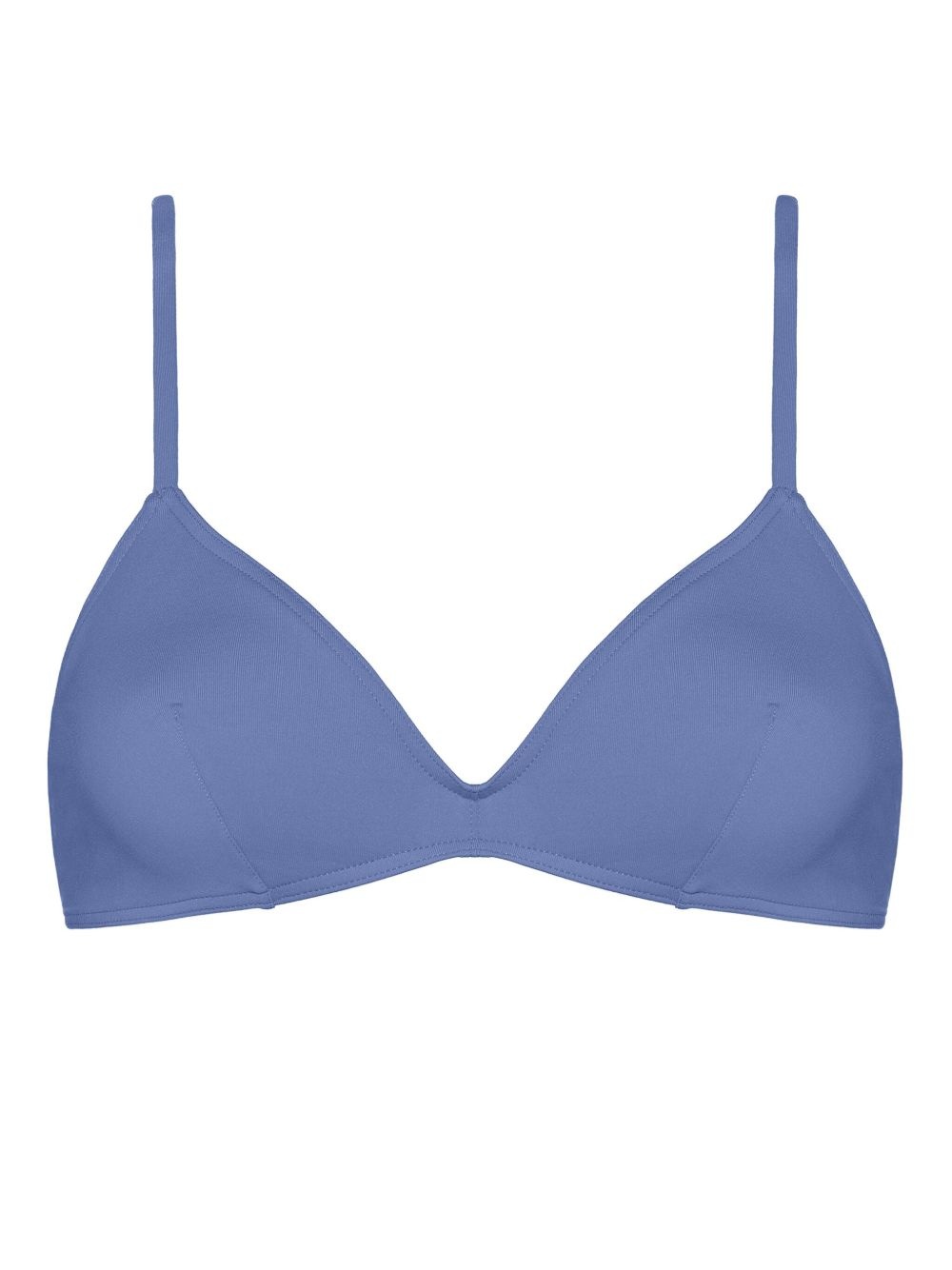 Tourbillon bikini top Highlights - Cornflower blue - Halterneck tie fastening - Rear tie fastening - Triangle cup - Be mindful to try on swimwear over your own garments. Made in France Composition Polyamide 77%, Spandex/Elastane 23% SIZE & FIT FittingInformation This piece fits small – take one size up