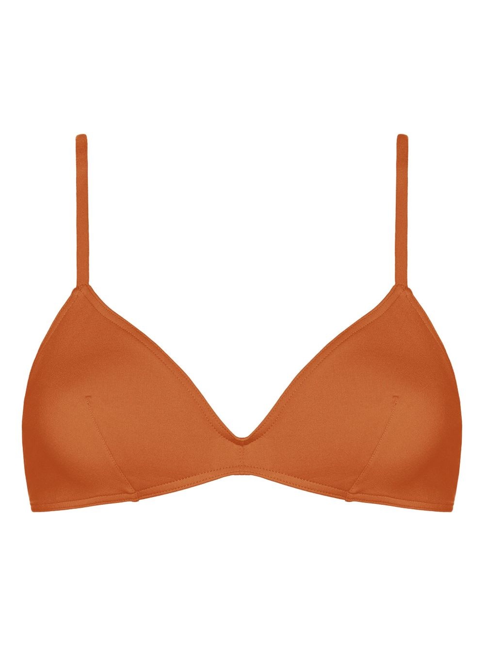 Tourbillon triangle bikini top Highlights - Brown - Adjustable neck strap - Rear touch-strap fastening - Triangle cup - Be mindful to try on swimwear over your own garments. Made in France Composition Polyamide 77%, Spandex/Elastane 23% SIZE & FIT FittingInformation This piece fits small – take one size up