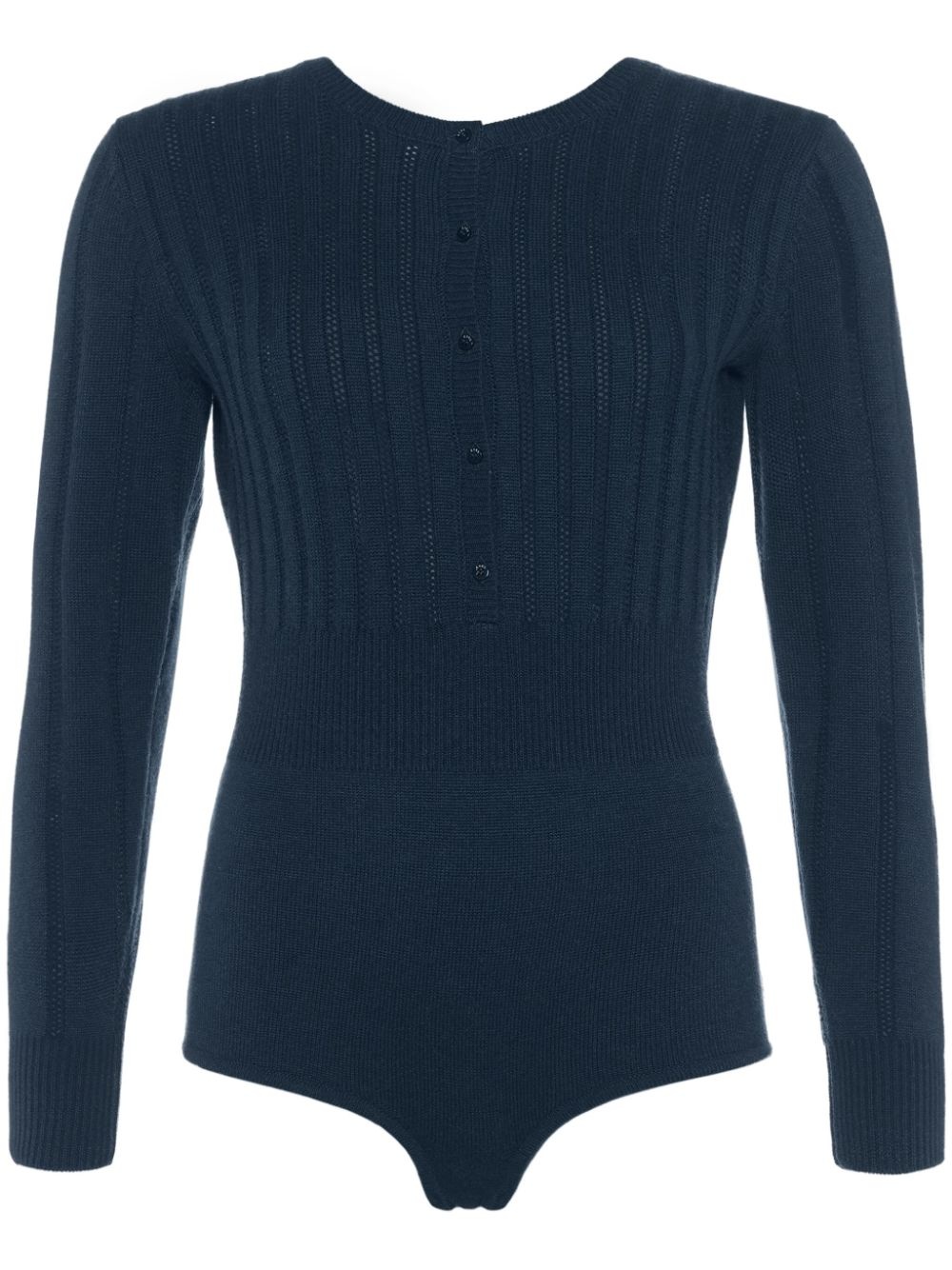 Tralala bodysuit Highlights - Blue - Wool-cashmere blend - Ribbed knit - Short front button fastening - Long sleeves - Rear press-stud fastening - Just a reminder that this piece must be tried on over your own garments. Imported Composition Wool 70%, Cashmere 30%