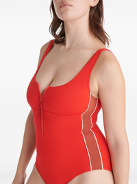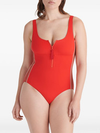 Tribune square-neck swimsuit Highlights - Cardinal red - Stretch-design - Stripe detailing - Square neck - Front zip fastening - Sleeveless - Be mindful to try on swimwear over your own garments. Imported Composition Polyamide 84%, Spandex/Elastane 16% SIZE & FIT FittingInformation This piece fits small – take one size up