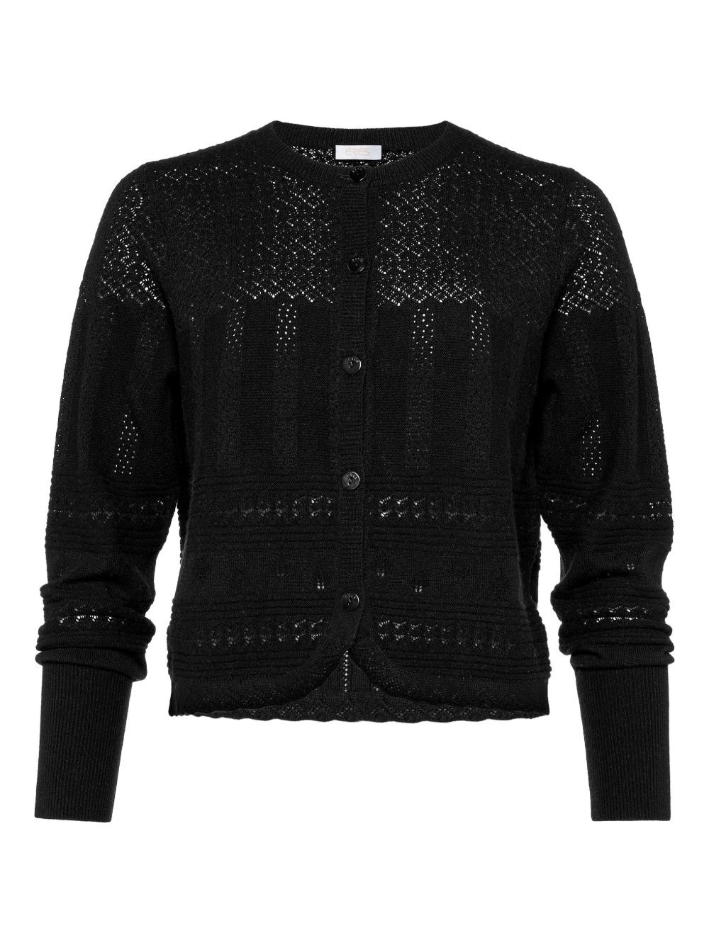 Trio buttonned cardigan Highlights - Black - Pointelle knit - Round neck - Button fastening - Long sleeves - Scalloped hem Imported Composition Wool 85%, Cashmere 15% Washing instructions Hand Wash