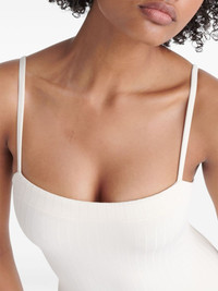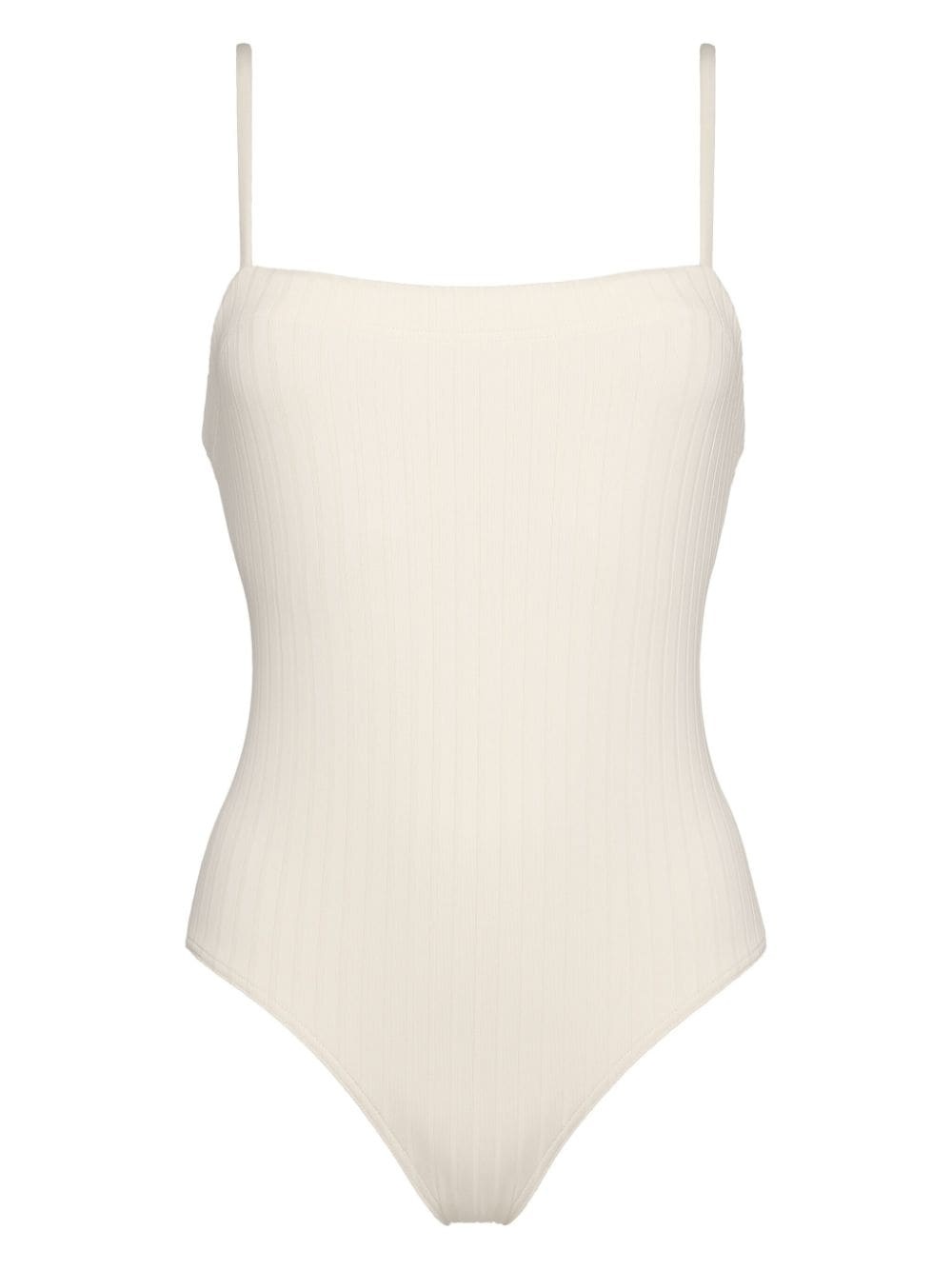Tropicalia ribbed swimsuit Highlights - Off-white - Stretch-design - Ribbed knit - Square neck - Thin shoulder straps - Sleeveless - Pull-on style - Full lining - Be mindful to try on swimwear over your own garments. Made in France Composition Polyamide 90%, Spandex/Elastane 10% SIZE & FIT FittingInformation This piece fits small – take one size up Washing instructions Machine Wash