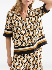 Sonore geometric-print short-sleeve shirt Highlights - Multicolour - Geometric pattern print - Striped border - Front button fastening - Notched collar Imported Composition Silk 100% Washing instructions Do Not Wash/Do Not Dry Clean