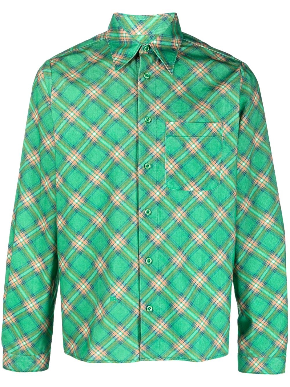 check-pattern corduroy shirt Highlights - Emerald green - Cotton - Corduroy - Check pattern - Pointed flat collar - Long sleeves - Buttoned cuffs - Front button fastening - Chest patch pocket - Straight hem Made in France Composition Cotton 100% SIZE & FIT Model measurements Height 6 ft 1 in(1.86 m) Bust/Chest 36.61 in(93 cm) Hips 37 in(94 cm) Waist 28.74 in(73 cm) Measurement CHEST 48.03 in(122 cm) SLEEVE LENGTH 27.16 in(69 cm) LENGTH 27.95 in(71 cm) WAIST 48.03 in(122 cm) Washing instructions Machine Wash