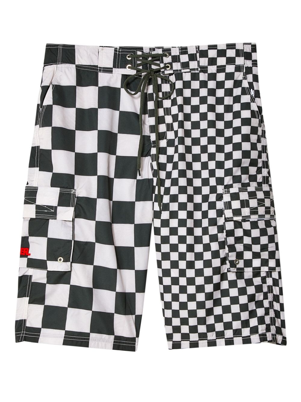 checked cargo shorts Highlights - White/black - Panelled design - Check pattern - Logo print at the leg - Rear elasticated waistband - Front lace-up fastening - Two side slash pockets - Two side cargo pockets - Two rear patch pockets Imported Composition Polyester 100%