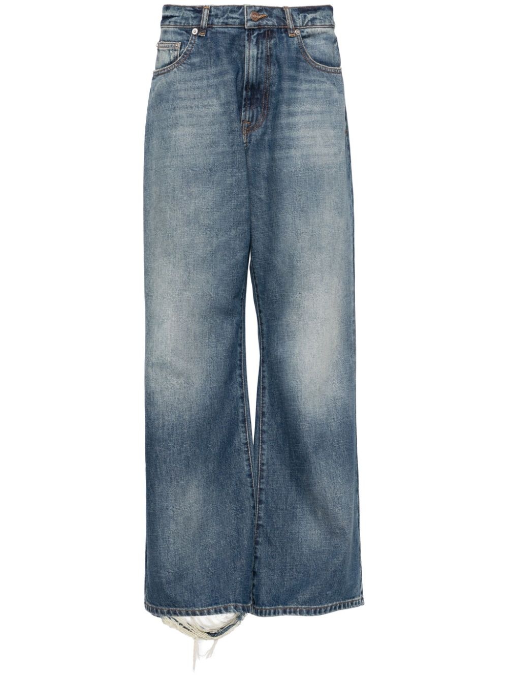 distressed jeans Highlights - Blue - Cotton - Denim - Concealed zip-fly and button fastening - Distressed effect - Belt loops - Classic five pockets - Logo patch to the rear - Full-length Made in Italy Composition Cotton 100%