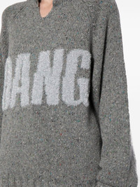 glitter-detail ribbed-knit jumper Highlights - Heather grey/silver-tone - Wool blend - Chunky ribbed knit - Melange effect - Glitter detailing - Jacquard - V-neck - Drop shoulder - Long sleeves - Straight hem Made in Italy Composition Wool 53%, Polyamide 23%, Viscose 18%, Metallized Polyester 6% SIZE & FIT Model measurements Height 5 ft 9 in(1.76 m) Bust/Chest 29.13 in(74 cm) Hips 33.07 in(84 cm) Waist 22.83 in(58 cm) FittingInformation Designed to be unstructured, offering a loose fit throughout Made with a midweight knit, this piece offers some stretch This piece fits true to size – take your usual size