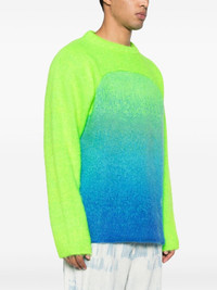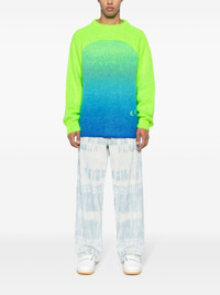 Gradient Rainbow intarsia-logo jumper Highlights - Lime green - Multicolour - Mohair-wool blend - Gradient effect - Brushed finish - Panelled design - Intarsia-knit logo - Crew neck - Long sleeves - Ribbed cuffs and hem - When buying this unisex item, keep in mind that it is graded in standard men's sizing. Made in Italy Composition Mohair 54%, Polyamide 24%, Wool 14%, Acrylic 8% SIZE & FIT Model measurements Height 6 ft 2 in(1.88 m) Bust/Chest 36.61 in(93 cm) Hips 37.79 in(96 cm) Waist 28.74 in(73 cm) Measurement CHEST 42.91 in(109 cm) SLEEVE LENGTH 30.7 in(78 cm) LENGTH 27.55 in(70 cm) WAIST 42.51 in(108 cm) FittingInformation This unisex piece is designed for a loose fit whether you usually select women's or men's sizes Made with a midweight knit, this piece offers some stretch Washing instructions Hand Wash