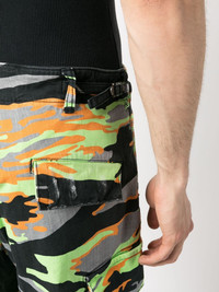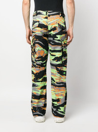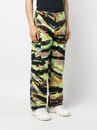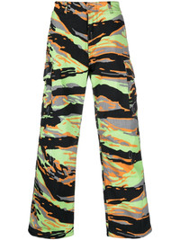 graphic-print cargo trousers Showing the brand's relaxed and playful style, these cargo pants from ERL feature a straight cut enhanced by a colourful camouflage print all over. They're crafted from cotton and finished with drawstring ankles for a perfect fit. Highlights - Multicolour - Stretch-cotton - Belt loops - All-over graphic print - Button fly fastening - Straight leg - Two side cargo pockets - Two rear flap pockets - When buying this unisex item, keep in mind that it is graded in standard men's sizing. Imported Composition Cotton 98%, Elastane 2% SIZE & FIT Model measurements Height 6 ft 1 in(1.86 m) Bust/Chest 37.4 in(95 cm) Hips 36.22 in(92 cm) Waist 29.52 in(75 cm) FittingInformation Designed for a straight-leg, allowing for an unrestricted and comfortable fit over the leg Made from a midweight stretch fabric, this piece offers elasticity and flexibility when worn This piece fits true to size – take your usual size Washing instructions Machine Wash
